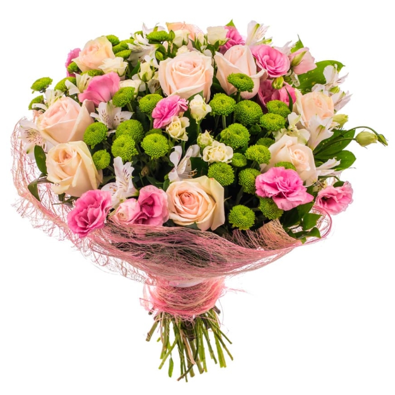 Альстромерия, Роза, Роза кустовая, Хризантема, Эустома |